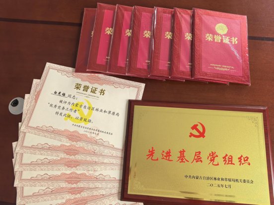 在中国共产党成立104周年之际,自治区林业和草原监测规划院多个集体与多名个人荣获自治区级表彰。其中,生态工程核查室党支部被自治区党委直属机关工委评为2024年度自治区直属机关“坚强堡垒支部”;杨茂勇同志荣获2025年度自治区直属机关“优秀共产党员”称号。在自治区林草局“两优一先”表彰中我院凭借卓越表现,庞晓燕、赵婧、韩芳、冯倩男、宝力道5名同志获得“优秀共产党员”称号,韩李荃、白光梅、朱宏3人获得“优秀党务工作者”称号,荒漠化监测室党支部、森林资源监测室党支部获得“先进基层党组织”称号。11名党员被评为局系统“四好党员”。这份荣誉是对我院党组织战斗堡垒作用、党员先锋模范风采的高度认可。