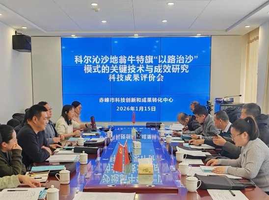 1月15日,赤峰市科技创新和成果转化中心组织邀请北京林业大学、内蒙古自治区林业和草原监测规划院等单位的专家,对翁牛特旗森林草原技术推广中心、中国科学院沈阳应用生态研究所和赤峰市林业科学研究所合作完成的《科尔沁沙地“以路治沙”模式技术体系研发与应用》成果进行了评价。经过现场质询、答疑、讨论,专家组一致认为,该研究成果达到国内领先水平。