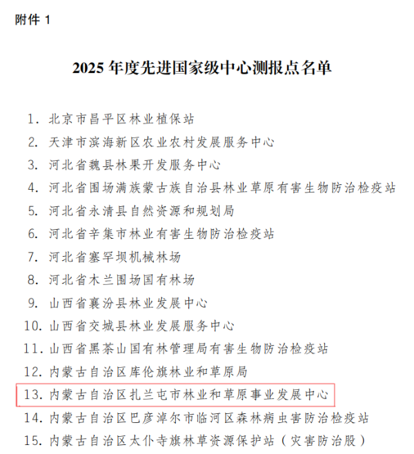 扎兰屯市林业和草原事业发展中心获评2025年度先进国家级林业有害生物中心测报点 -林草快讯- 澳门博彩在线
