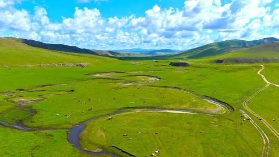 这片草原以“草原+山地+河流”的复合生态系统为基底,划分为南北两大片区,东南紧邻高格斯台罕乌拉国家级自然保护区,形成生态保护的天然屏障。作为全国极具代表性的游牧草原,这里是生物多样性的富集地。蜿蜒的达拉尔河贯穿北部片区,与星罗棋布的淖尔、草甸形成“水—草—畜”依存的生态链,孕育出全国罕见的原生态游牧草原生态系统。