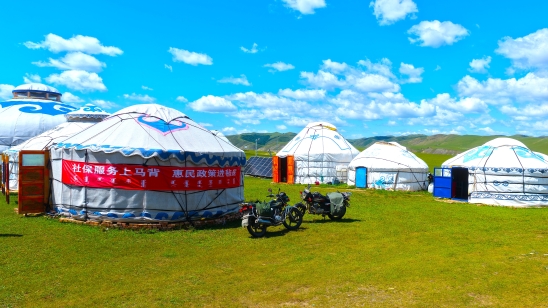 8月10日,在阿鲁科尔沁旗最北部的巴彦温都尔苏木塔林花国家自然公园的游牧场拍摄的游牧服务中心。(李富 端木 摄)