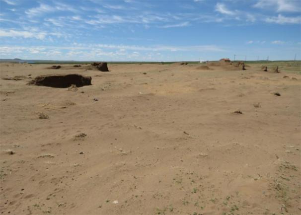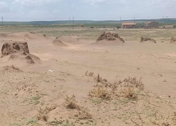 2000年以来由于连续干旱、人口增加、过度利用、气候原因,以及草原鼠虫害频发等因素,导致天然放牧场退化沙化严重, 出现零散分布的风蚀坑。