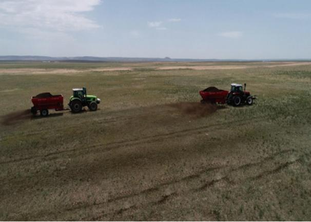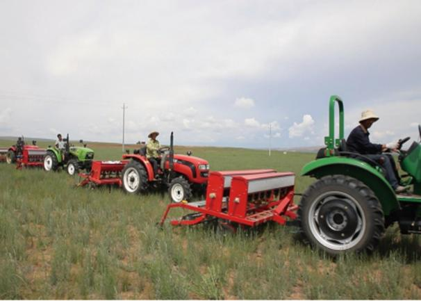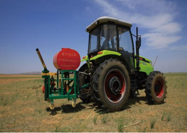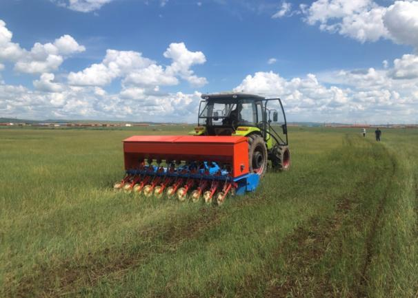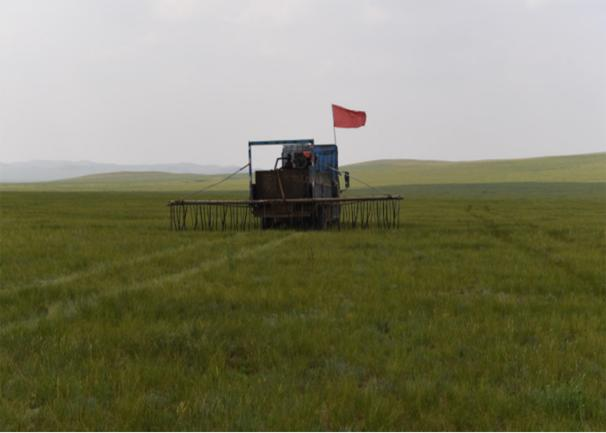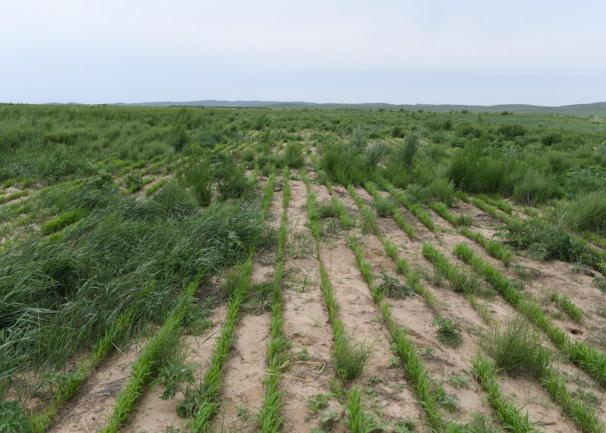 针对沙化草地土壤贫瘠,有效养分含量低的问题,施用有机肥。在作业过程中,严格执行种子箱和化肥箱分开,提高出苗率和幼苗成活率;在草种选择上,主要选用耐寒耐旱物种,高冰草、沙生冰草、沙打旺、羊柴 。