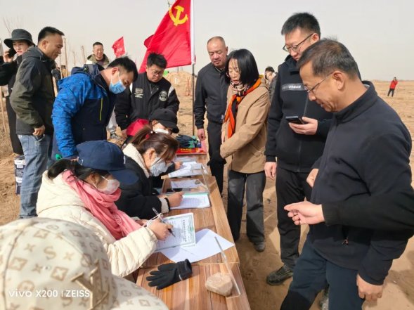 倡导“捐资捐物”。发布2025年巴彦淖尔市义务植树倡议书,让社会公众充分了解义务植树尽责形式、参与方式。今年义务植树大会战当天,蒙草生态环境(集团)股份有限公司、华能新能源股份有限公司、天津中环新能源有限公司向磴口防沙林场捐赠25万元,所捐资金用于防沙林场苗木采购、抚育管护等工作。